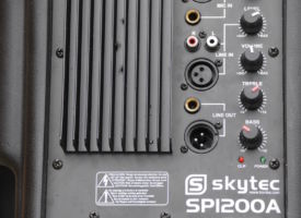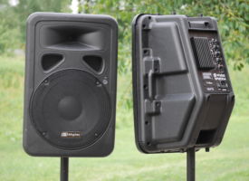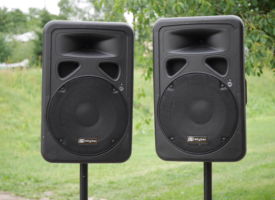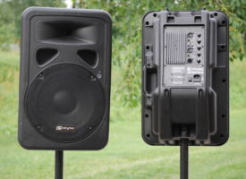 Good quality active speakers Best-4-Music Skytec 12, maximal power 2 x 600 W with two stands in bag. Reccommended size of event appr 200 participants. Set is suitable for transportation and quick set up.